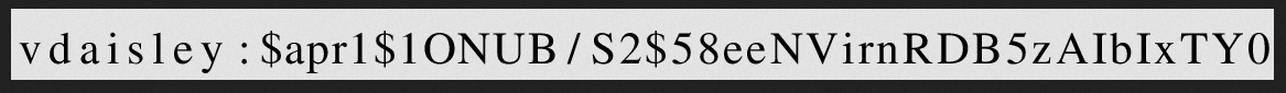 $\lstinputlisting{/var/www/dev/.htpasswd}$